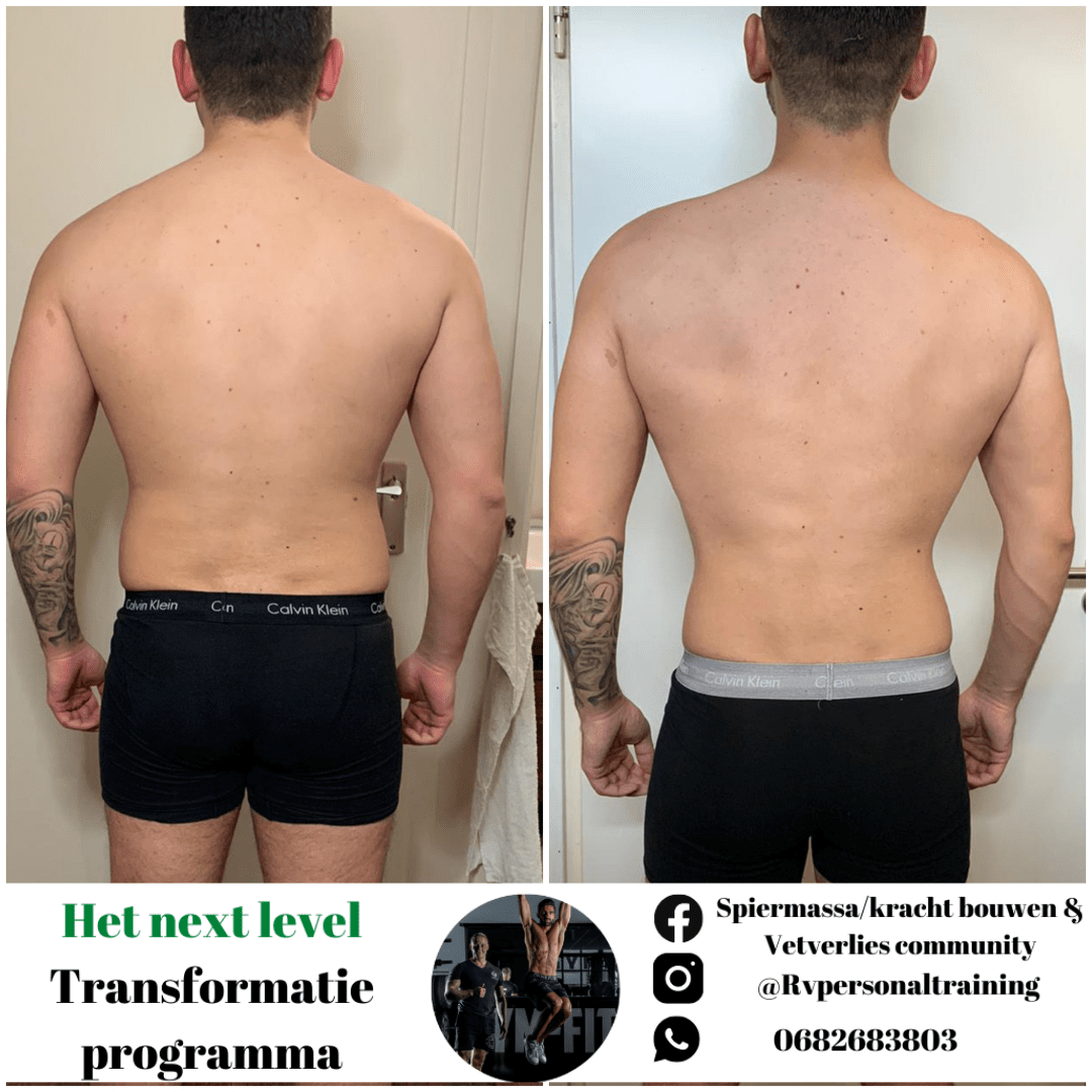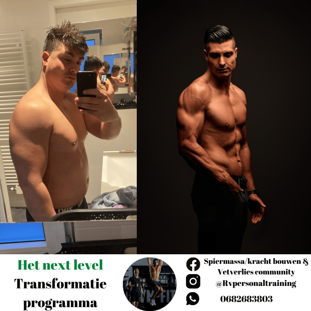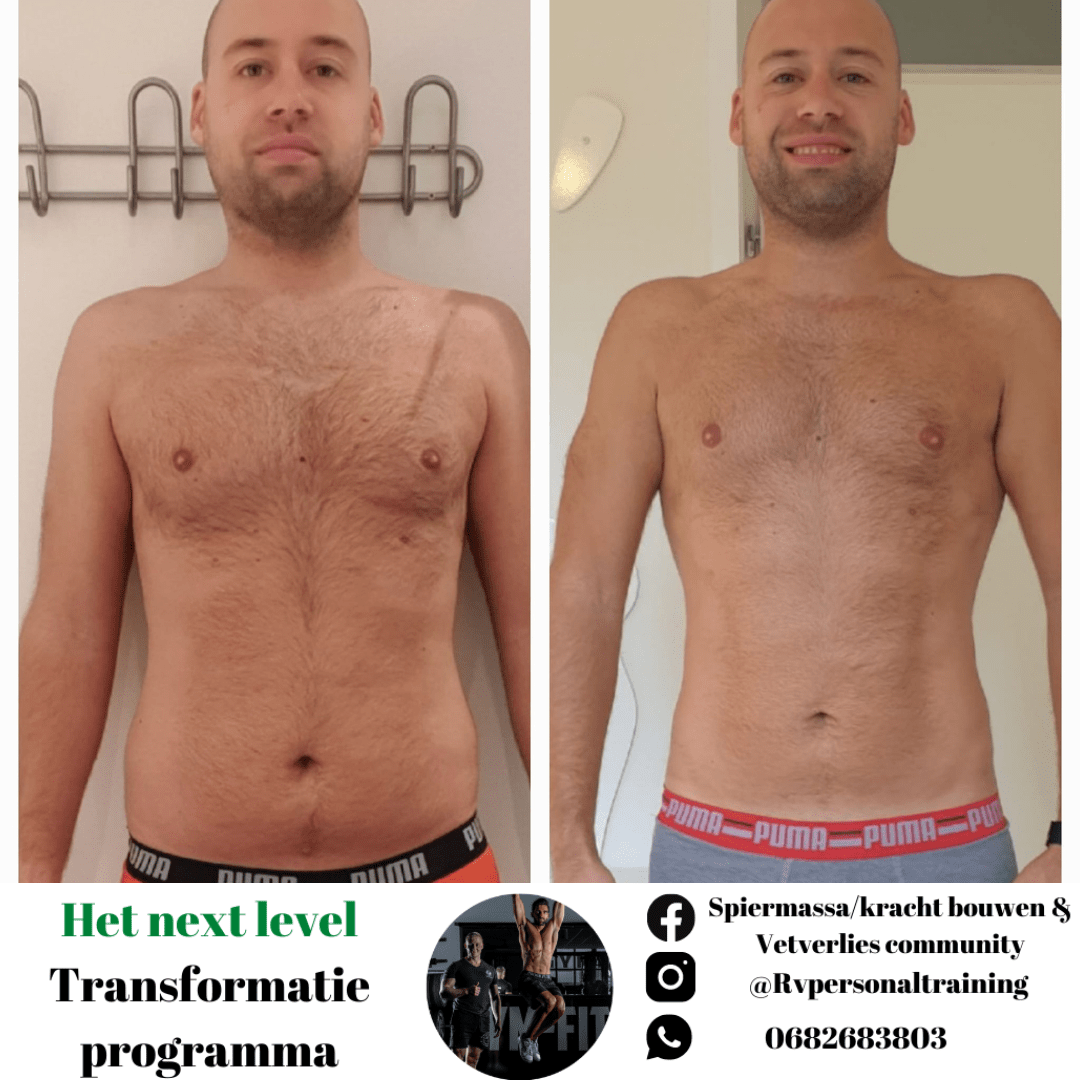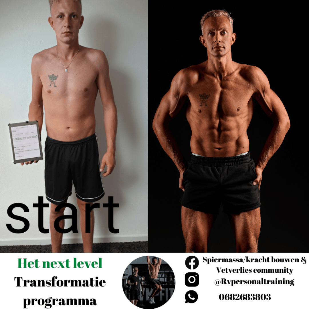* Individuele resultaten kunnen variëren en er wordt niet beweerd dat getuigenissen typische resultaten vertegenwoordigen. Alle getuigenissen zijn echte mannen en / of vrouwen en weerspiegelen mogelijk niet de ervaring van de typische koper, en zijn niet bedoeld om te representeren of te garanderen dat iemand dezelfde of vergelijkbare resultaten zal bereiken. Iedereen heeft unieke ervaringen, trainingsgewoonten, eetgewoonten en past de informatie op een andere manier toe. De ervaringen die we delen met andere mensen, weerspiegelen dus mogelijk niet de ervaring van de typische gebruikers. Deze resultaten zijn echter bedoeld als een demonstratie van wat de beste, meest gemotiveerde gebruikers hebben bereikt. Bovendien neemt u met dit systeem bepaalde risico's die inherent zijn aan oefeningen en voedingsprogramma's. U moet het programma niet starten als u een lichamelijke conditie hebt die intensieve lichaamsbeweging gevaarlijk maakt. Bovendien vereisen onze programma's dat u een voedingsplan volgt en soms de hoeveelheid calorieën die u consumeert, beperkt. U moet dit eetplan niet starten als u lichamelijke of psychische problemen heeft die vetverlies gevaarlijk maken. Rvpersonaltraining.nl / Programma’s van Robin Veltkamp zijn een educatieve dienst die algemene gezondheidsinformatie verstrekt. Robin is geen arts en zijn advies is geen vervanging voor medisch advies. Raadpleeg een arts voordat u met een oefening of dieet begint