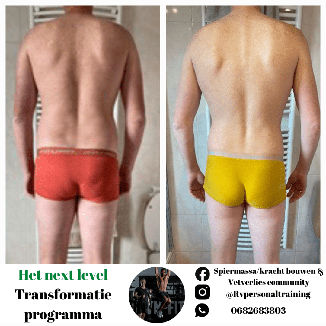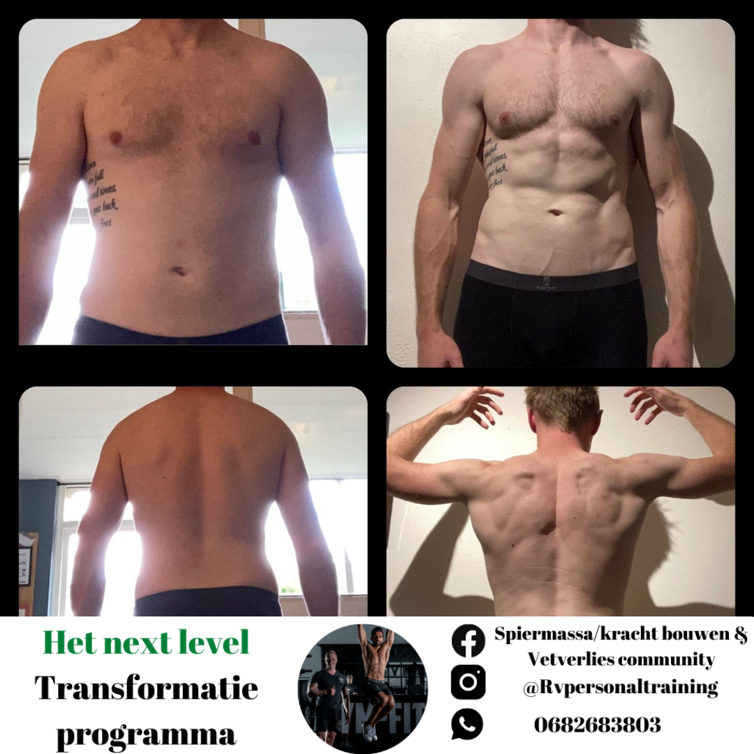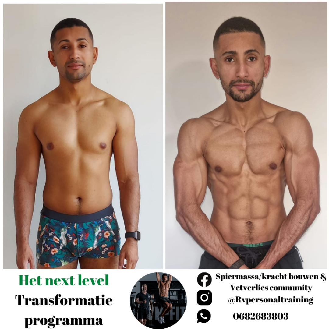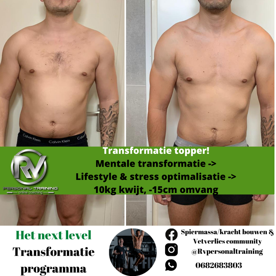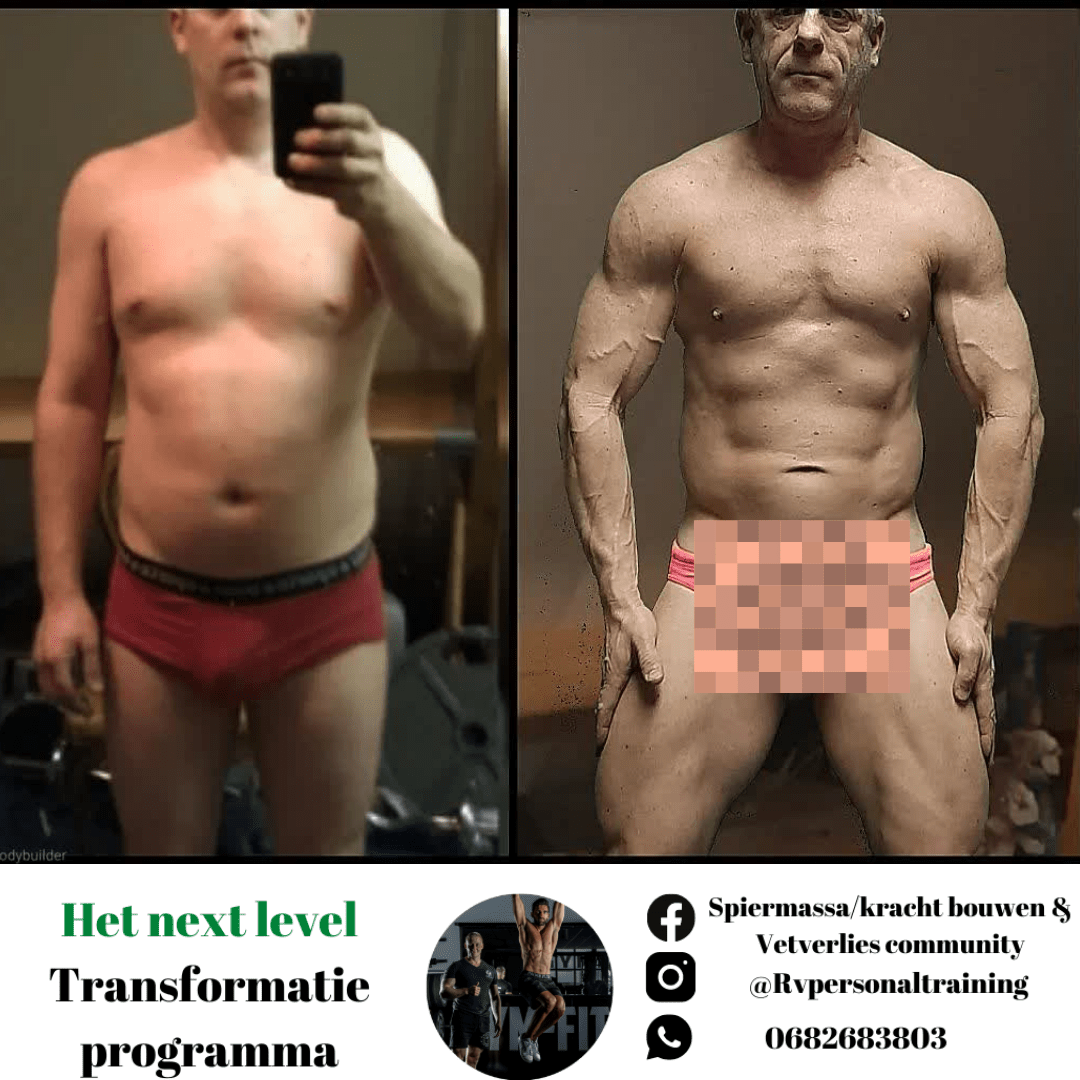 * Individuele resultaten kunnen variëren en er wordt niet beweerd dat getuigenissen typische resultaten vertegenwoordigen. Alle getuigenissen zijn echte mannen en / of vrouwen en weerspiegelen mogelijk niet de ervaring van de typische koper, en zijn niet bedoeld om te representeren of te garanderen dat iemand dezelfde of vergelijkbare resultaten zal bereiken. Iedereen heeft unieke ervaringen, trainingsgewoonten, eetgewoonten en past de informatie op een andere manier toe. De ervaringen die we delen met andere mensen, weerspiegelen dus mogelijk niet de ervaring van de typische gebruikers. Deze resultaten zijn echter bedoeld als een demonstratie van wat de beste, meest gemotiveerde gebruikers hebben bereikt. Bovendien neemt u met dit systeem bepaalde risico's die inherent zijn aan oefeningen en voedingsprogramma's. U moet het programma niet starten als u een lichamelijke conditie hebt die intensieve lichaamsbeweging gevaarlijk maakt. Bovendien vereisen onze programma's dat u een voedingsplan volgt en soms de hoeveelheid calorieën die u consumeert, beperkt. U moet dit eetplan niet starten als u lichamelijke of psychische problemen heeft die vetverlies gevaarlijk maken. Rvpersonaltraining.nl / Programma’s van Robin Veltkamp zijn een educatieve dienst die algemene gezondheidsinformatie verstrekt. Robin is geen arts en zijn advies is geen vervanging voor medisch advies. Raadpleeg een arts voordat u met een oefening of dieet begint